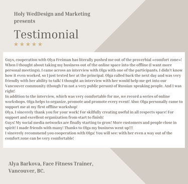 Out testimonials. Customers reviews who recommend Holy Marketing web design agency in Vancouver, BC. Let's grow your business together!